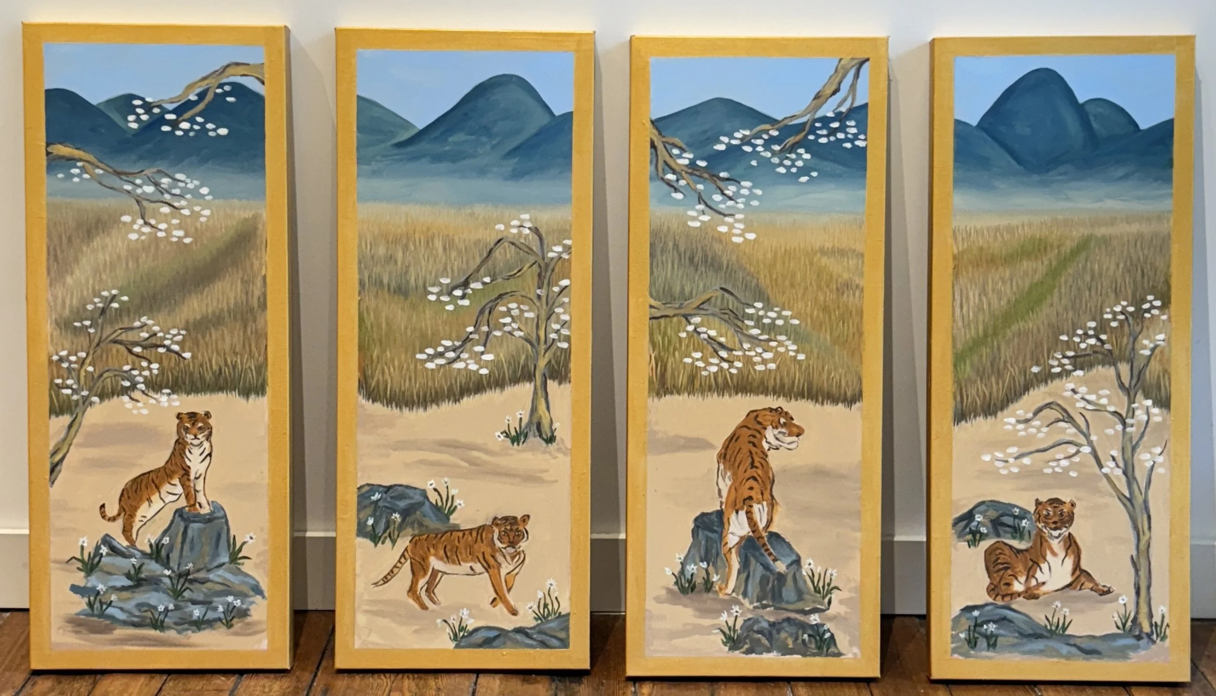 17 X 56 ea. PAINT AND INK ON RICE PAPER. $1200 EA.